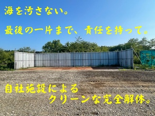 3. コンプライアンス遵守: 周辺地域や海域に負担をかけない、クリーンな処理体制。
